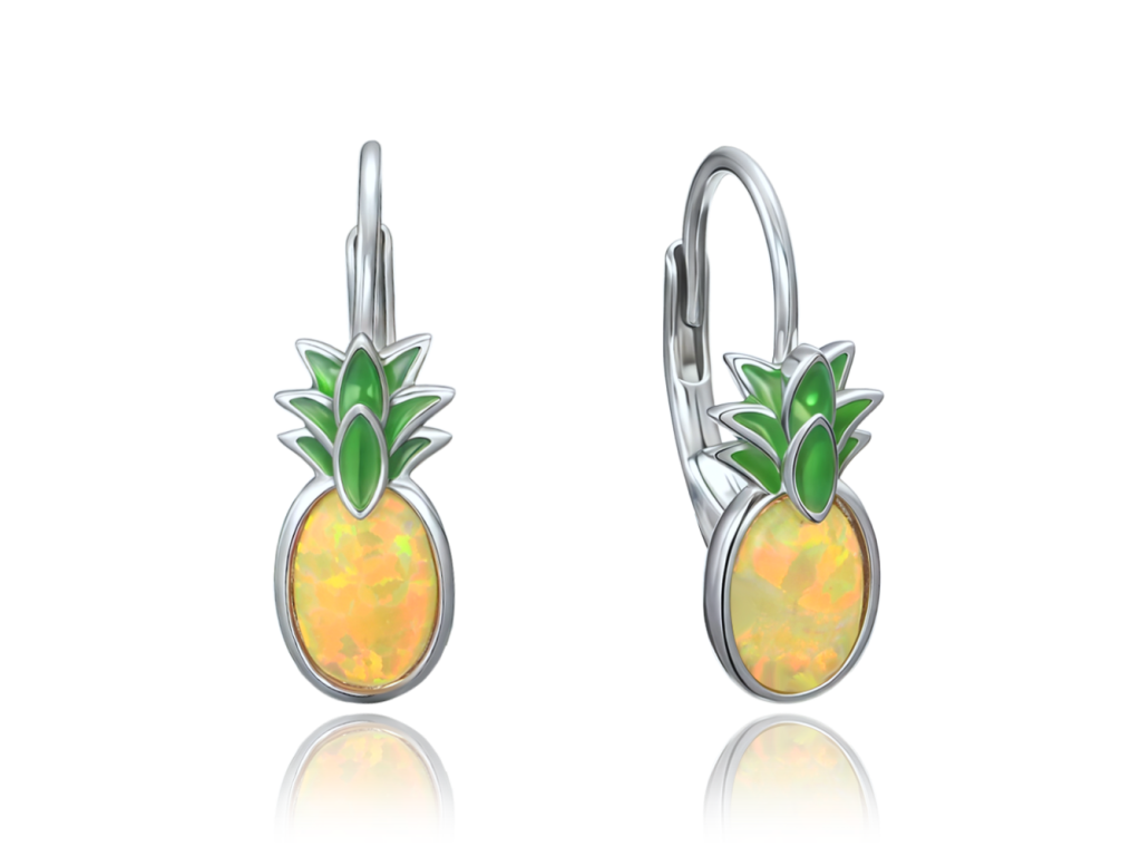 MINET Letní stříbrné náušnice ananasy se žlutým opálem