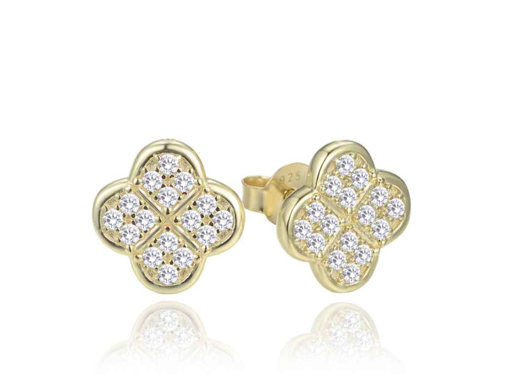 MINET Pozlacené stříbrné náušnice čtyřlístky s bílými zirkony