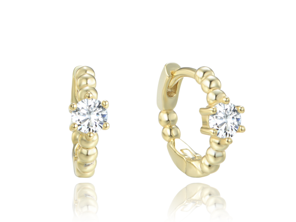 MINET Pozlacené stříbrné náušnice kroužky s bílými zirkony