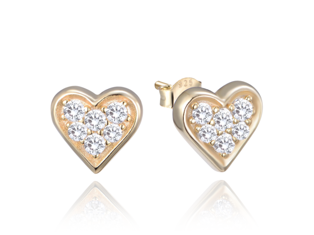 MINET Pozlacené stříbrné náušnice srdíčka se zirkony