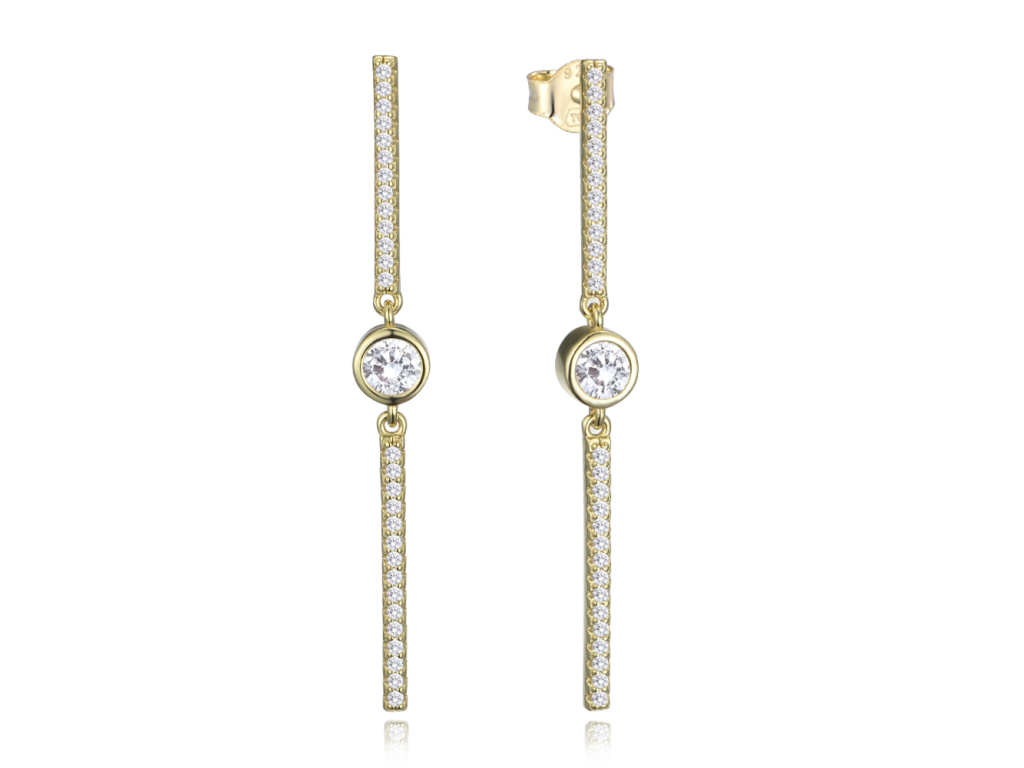 MINET Pozlacené stříbrné náušnice tyčky s bílými zirkony