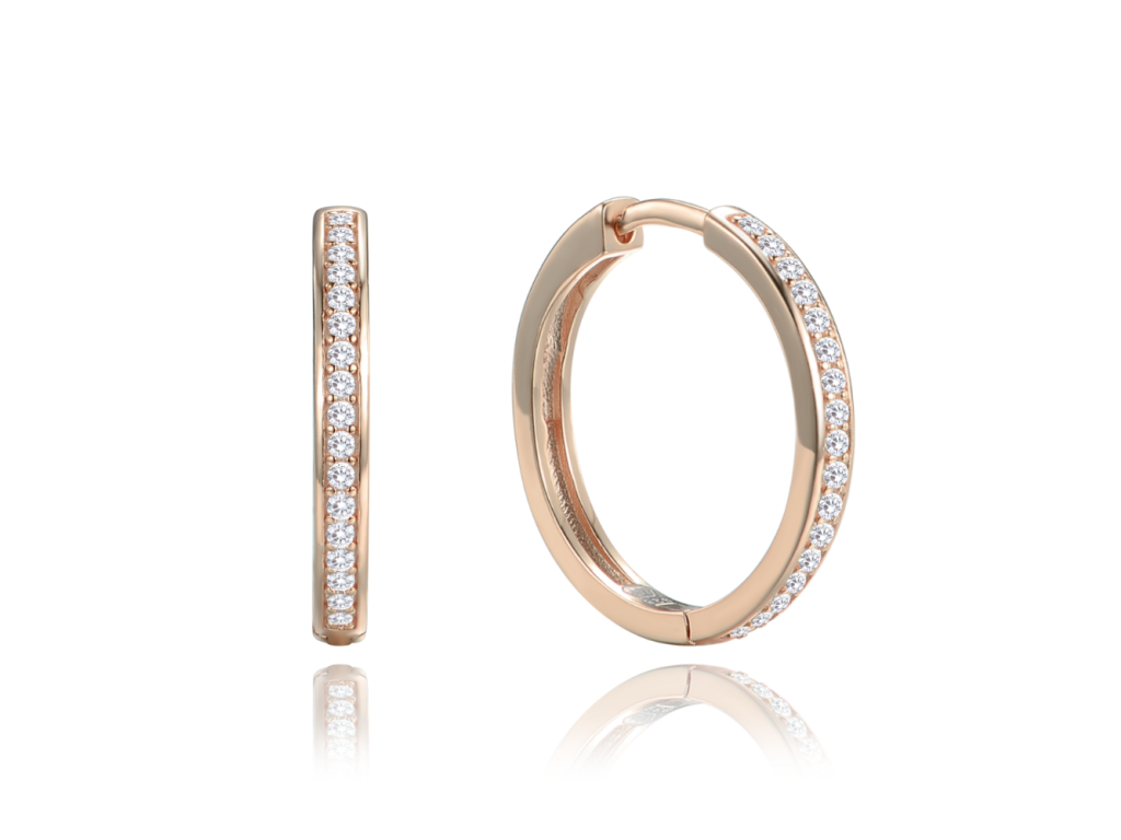 MINET Rose gold stříbrné náušnice hranaté kruhy 2 cm s bílými zirkony
