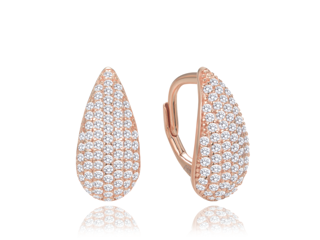 MINET Rose gold stříbrné náušnice kapky s bílými zirkony