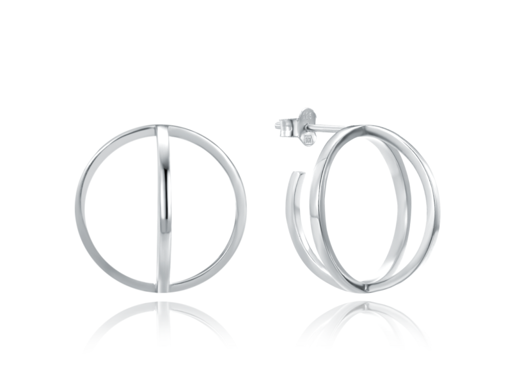 MINET Stříbrné dvojité kruhové geometrické náušnice