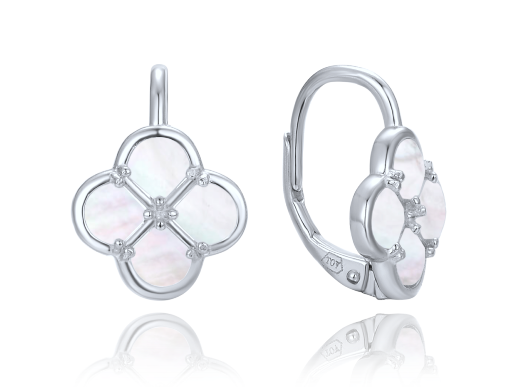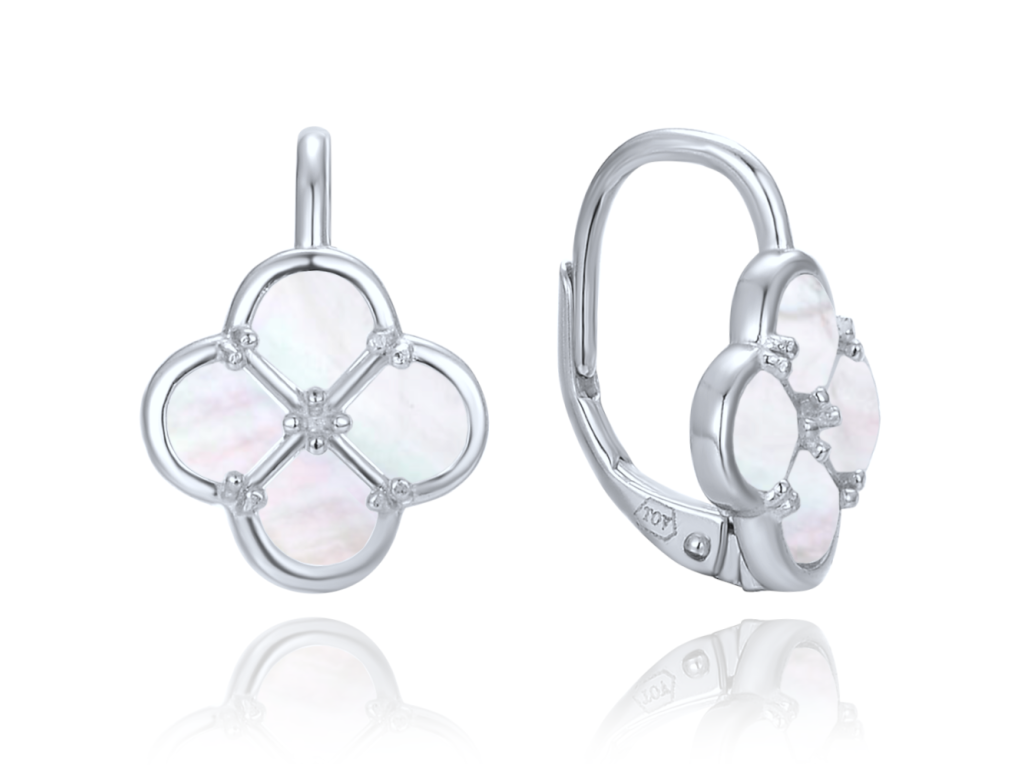 MINET Stříbrné náušnice čtyřlístky s bílou perletí