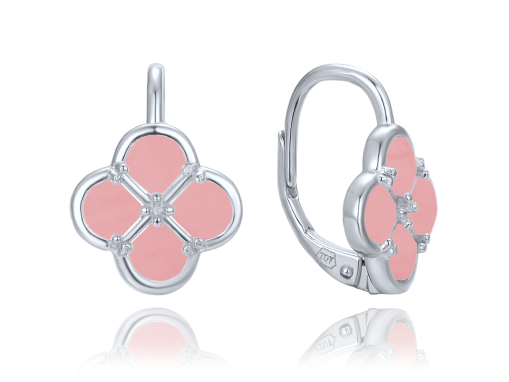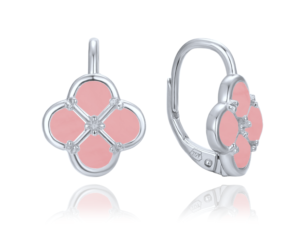 MINET Stříbrné náušnice čtyřlístky s jadeitem