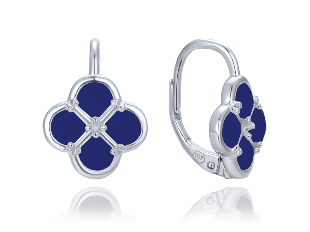 MINET Stříbrné náušnice čtyřlístky s lapisem