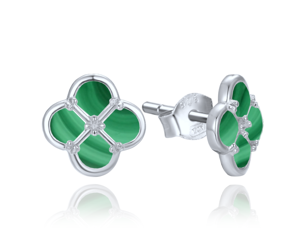 MINET Stříbrné náušnice čtyřlístky s malachitem