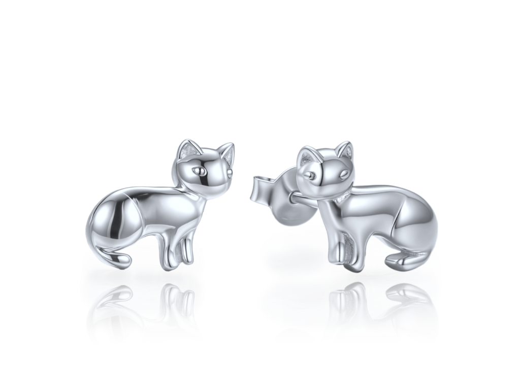 MINET Stříbrné náušnice kočky