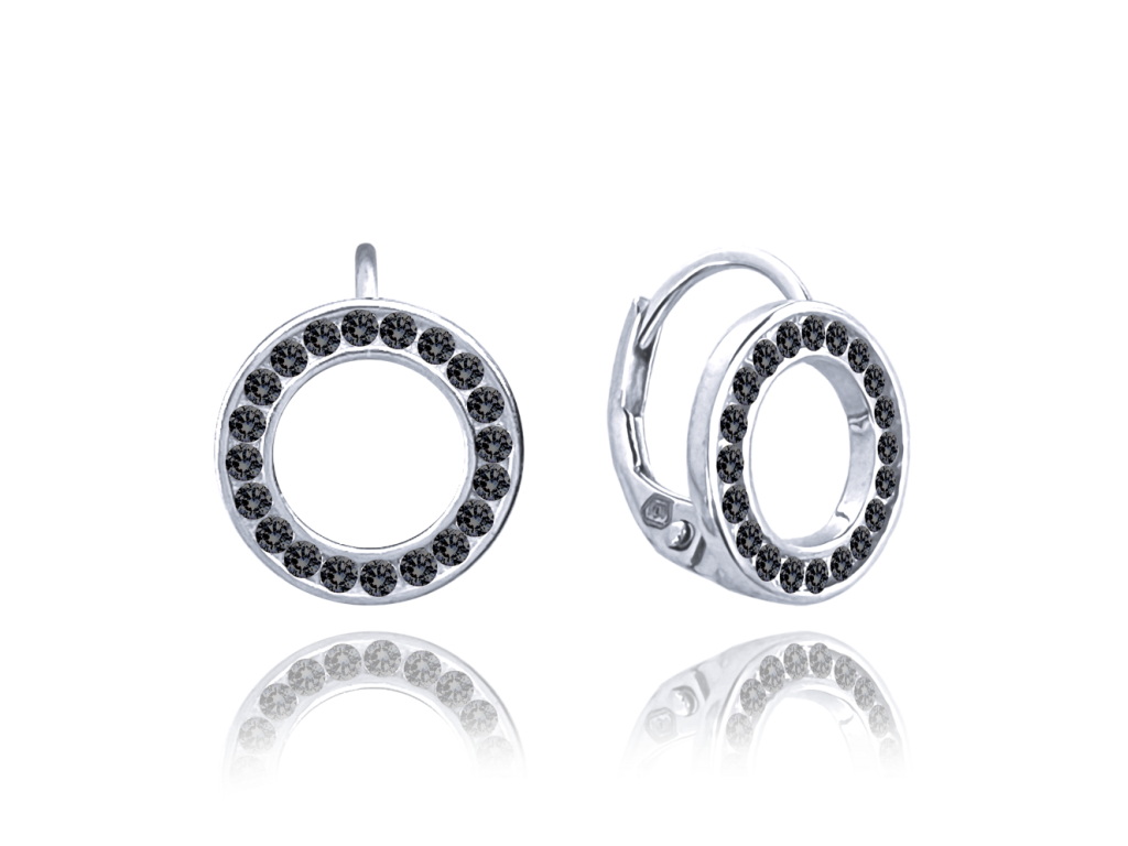MINET Stříbrné náušnice KROUŽKY s černými zirkony