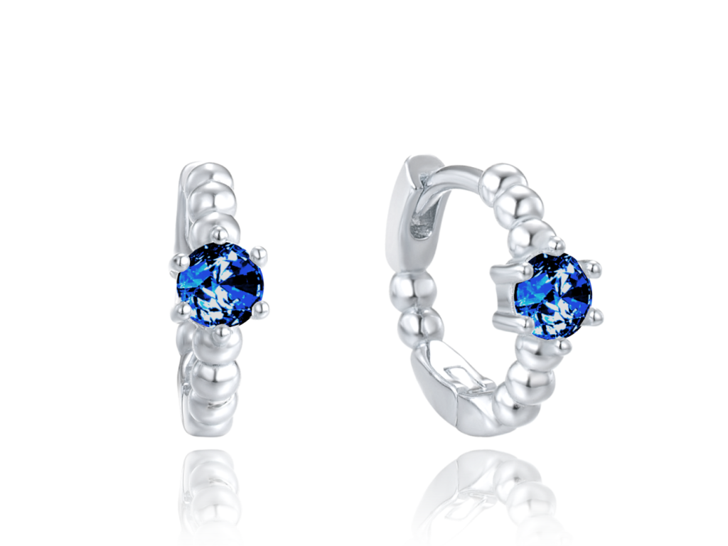 MINET Stříbrné náušnice kroužky s modrými zirkony