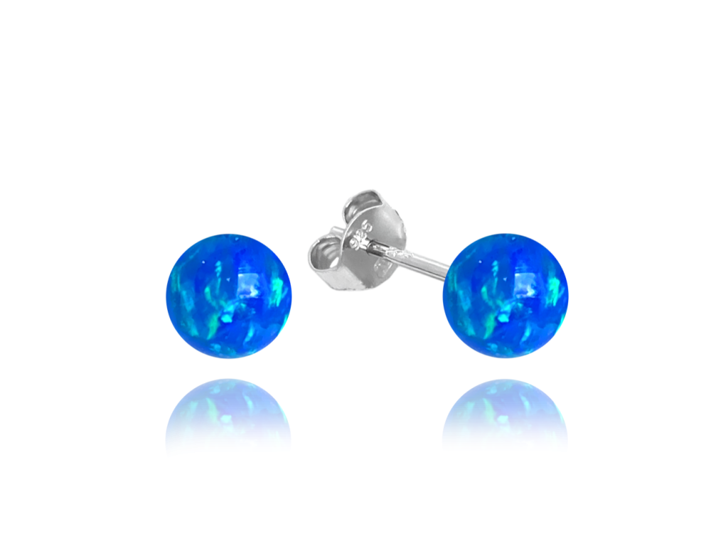 MINET Stříbrné náušnice KULIČKY s tmavě modrými opálky 6mm