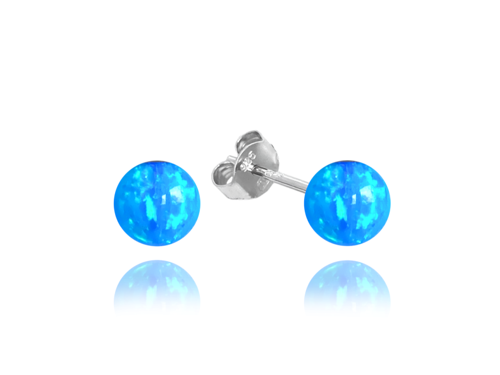 MINET Stříbrné náušnice KULIČKY se světle modrými opálky 6mm