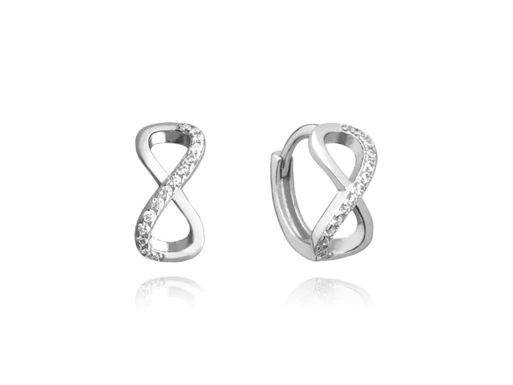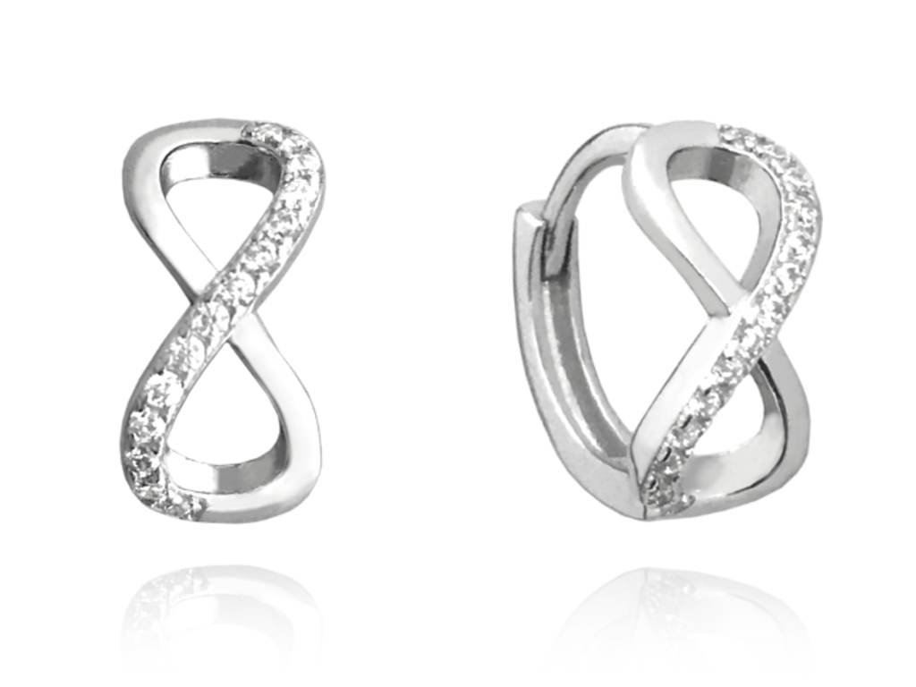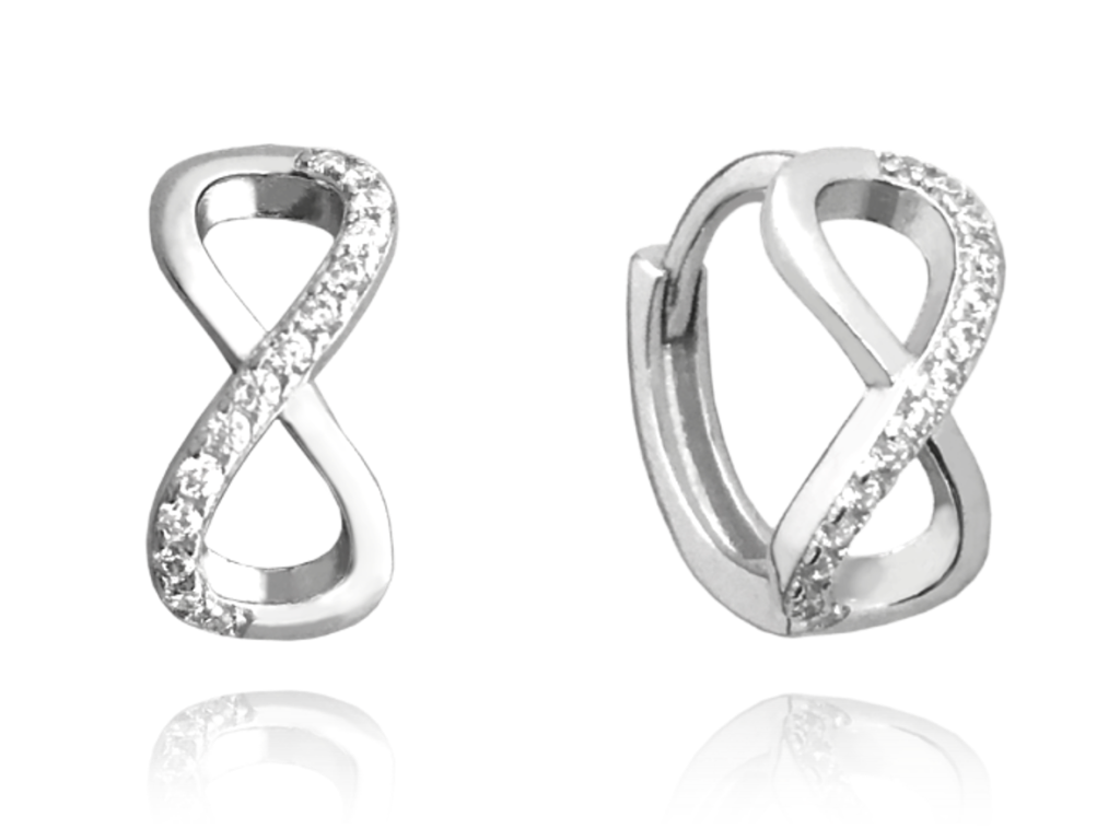 Stříbrné náušnice MINET se symboly nekonečna jsou odrazem současných trendů. Zajímavě posazené kamínky z nich udělají originální doplněk pro každodenní nošení. Náušnice jsou vyrobeny z rhodiovaného stříbra, kameny jsou zirkony. Díky kvalitním materiálům si zachovávají dlouhotrvající barvu i lesk.Doplňkové parametry