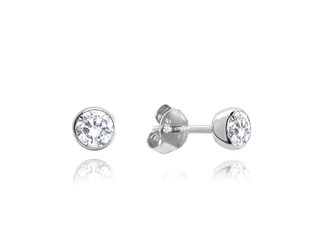 MINET Stříbrné náušnice PECKY s bílými zirkony 4 mm