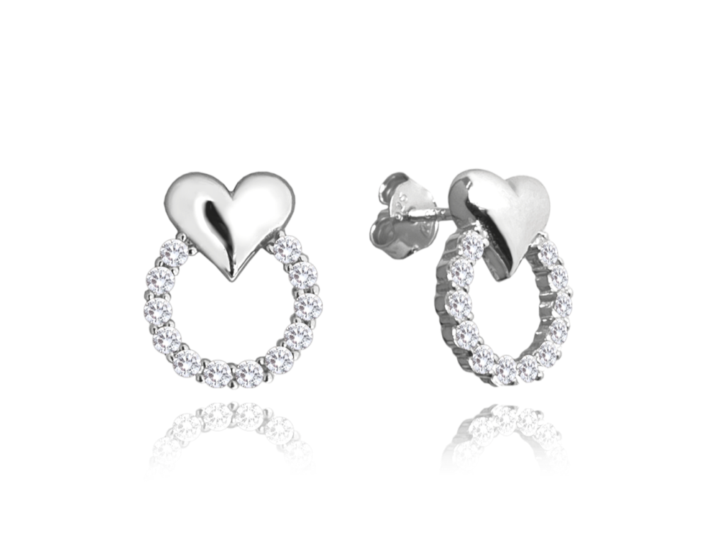 MINET Stříbrné náušnice se srdíčky LOVE s bílými zirkony