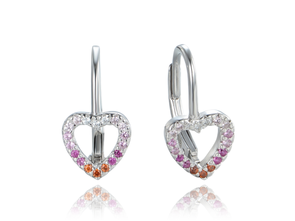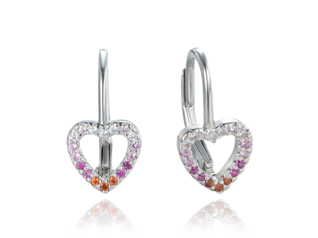 MINET Stříbrné náušnice srdce se zirkony v červených odstínech