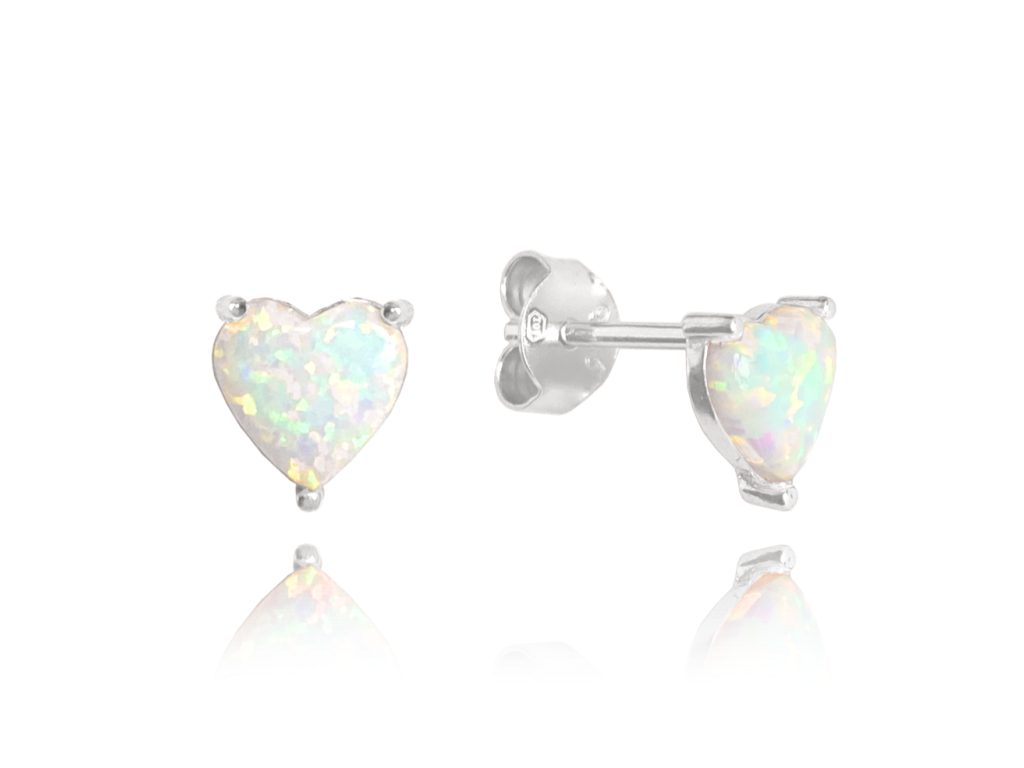 MINET Stříbrné náušnice SRDÍČKA s bílými opálky