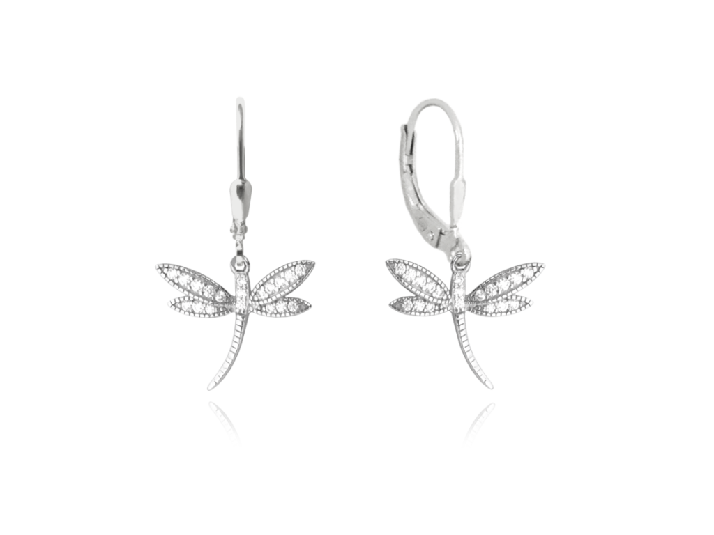 MINET Stříbrné náušnice VÁŽKY s bílými zirkony