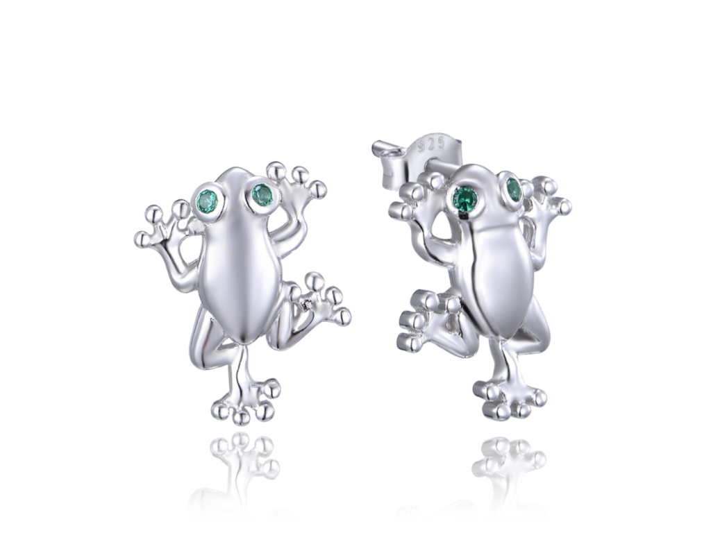MINET Stříbrné náušnice ŽABKY s bílými zirkony