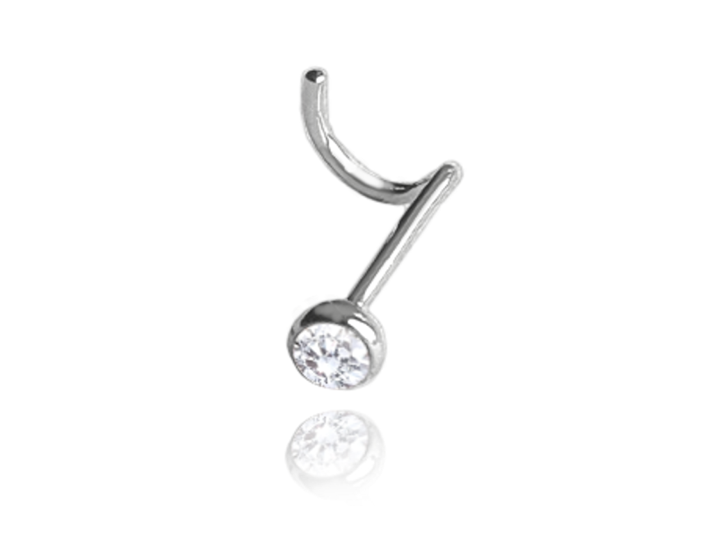 MINET Stříbrný piercing do nosu s bílým zirkonem