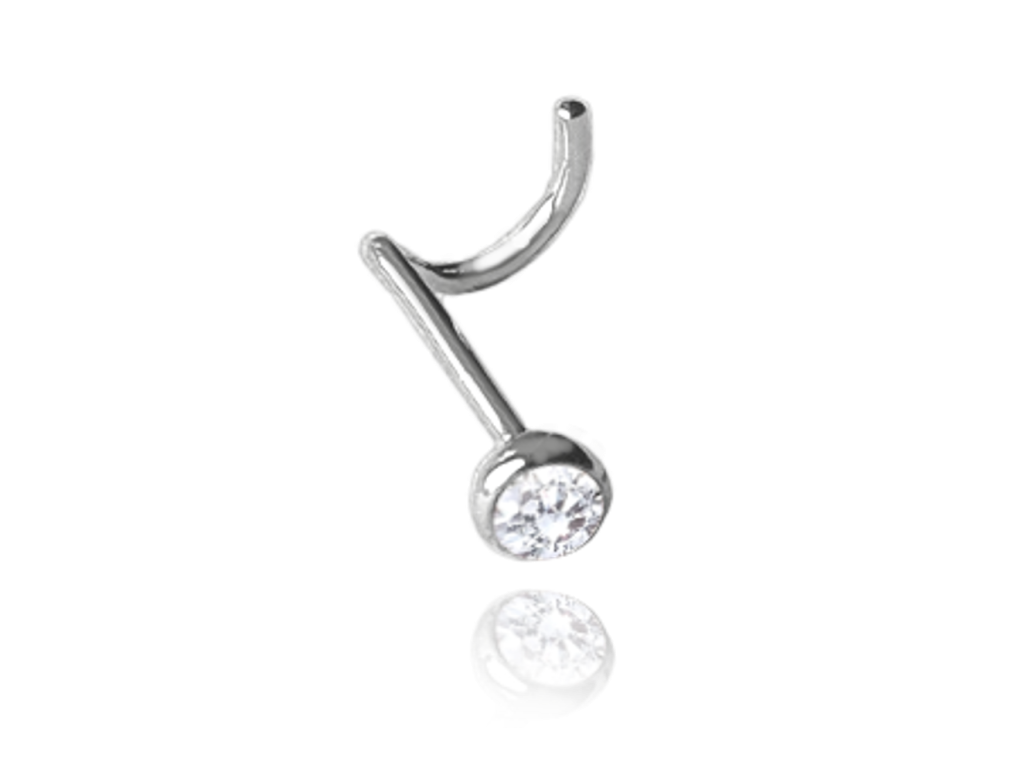 MINET Stříbrný piercing do nosu s bílým zirkonem