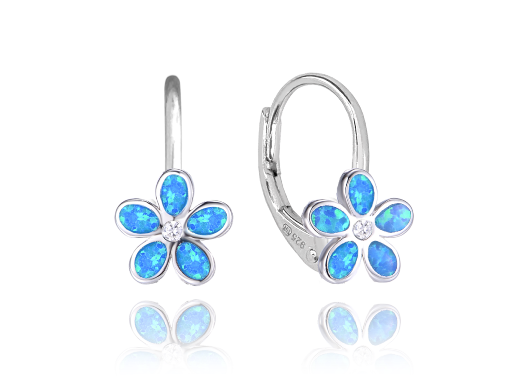 MINET Třpytivé dětské stříbrné náušnice KYTIČKY s modrými opálky a zirkonem