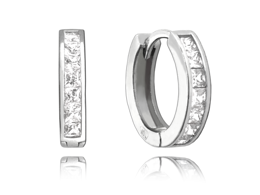 Stříbrné náušnice kroužky jsou díky praktickému zapínání a tvaru pohodlné pro každodenní nošení. Bílé zirkony se krásně třpytí a ozvláštníte jimi svůj outfit. Povrch stříbra je z rhodia, náušnice tedy neztratí svůj zářivý lesk a barvu.Doplňkové parametry