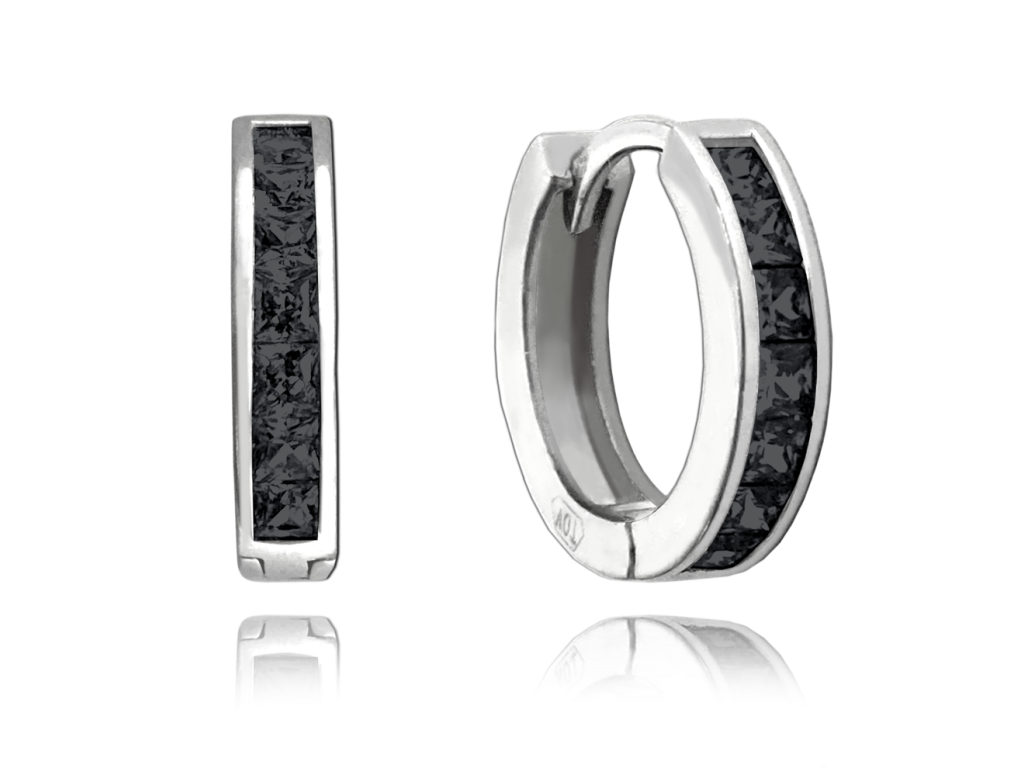 Černé náušnice kroužky jsou díky praktickému zapínání a tvaru pohodlné pro každodenní nošení. Černé zirkony se krásně třpytí a ozvláštníte jimi svůj outfit. Povrch stříbra je z rhodia, náušnice tedy neztratí svůj zářivý lesk a barvu.Doplňkové parametry