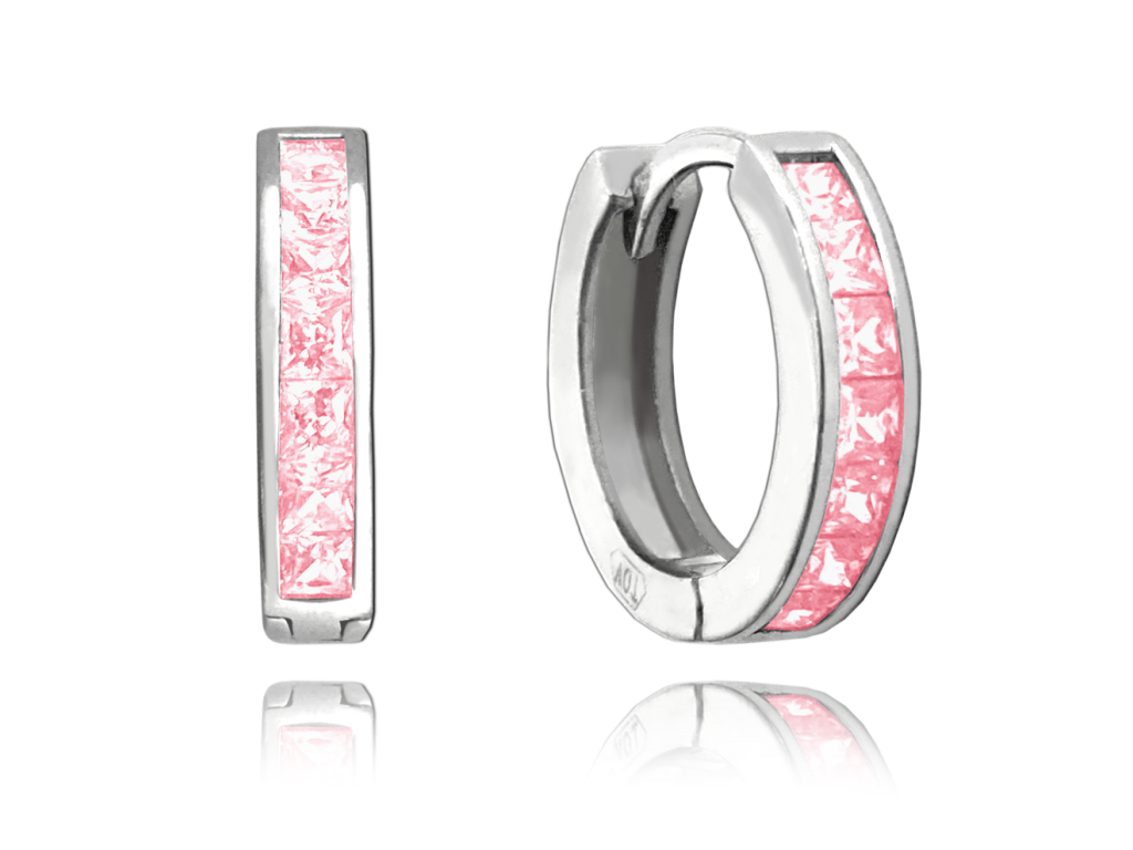 Světle růžové náušnice kroužky jsou díky praktickému zapínání a tvaru pohodlné pro každodenní nošení. Růžové zirkony se krásně třpytí a ozvláštníte jimi svůj outfit. Povrch stříbra je z rhodia, náušnice tedy neztratí svůj zářivý lesk a barvu.Doplňkové parametry