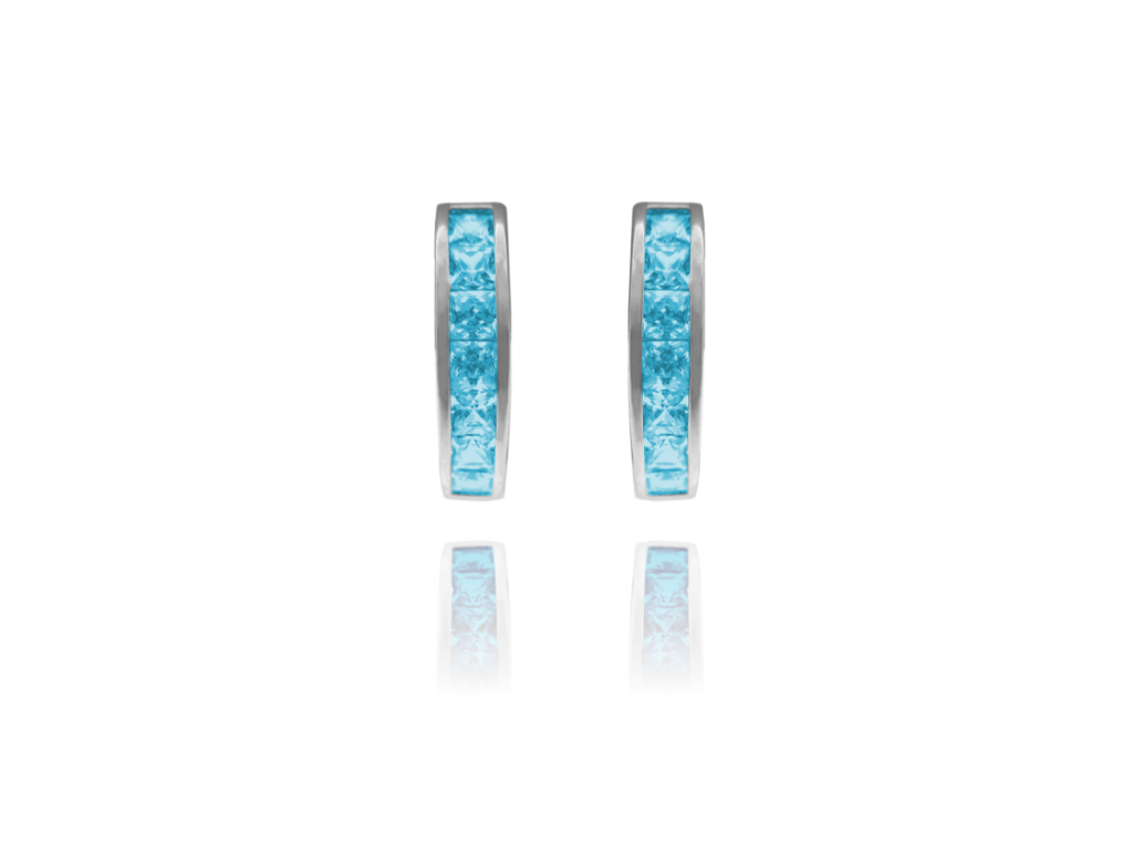 Bledě modré náušnice kroužky jsou díky praktickému zapínání a tvaru pohodlné pro každodenní nošení. Modré zirkony se krásně třpytí a ozvláštníte jimi svůj outfit. Povrch stříbra je z rhodia, náušnice tedy neztratí svůj zářivý lesk a barvu.Doplňkové parametry