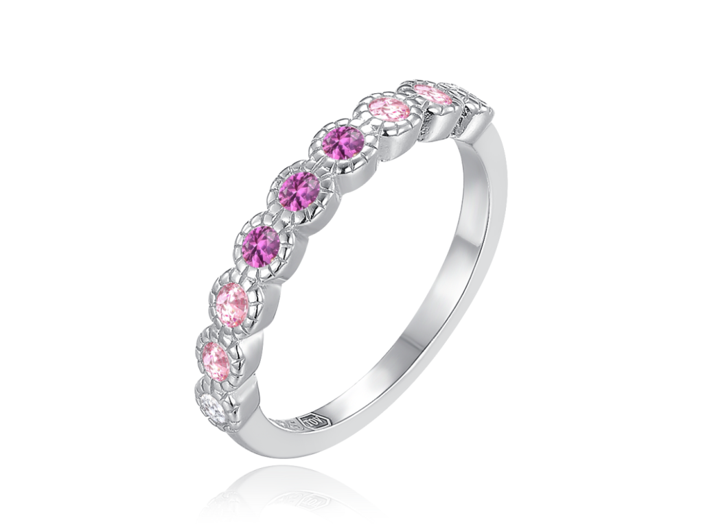MINET Dětský stříbrný prsten s bílými, růžovými a červenými zirkony vel. 48