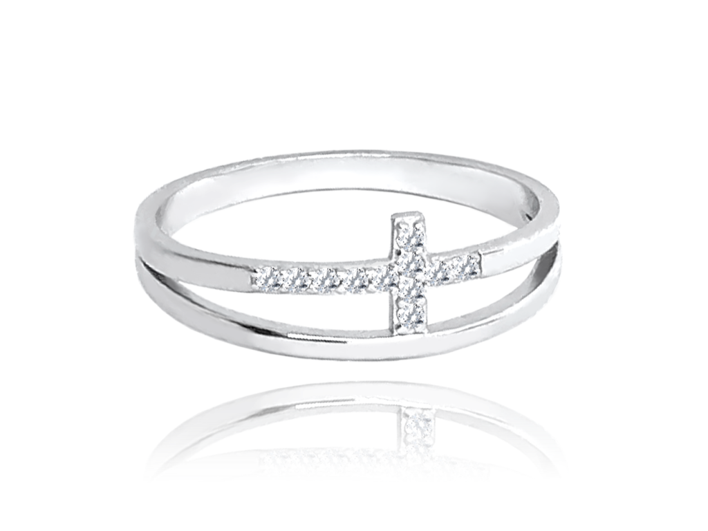 MINET Dvojitý stříbrný prsten KŘÍŽEK s bílými zirkony vel. 60