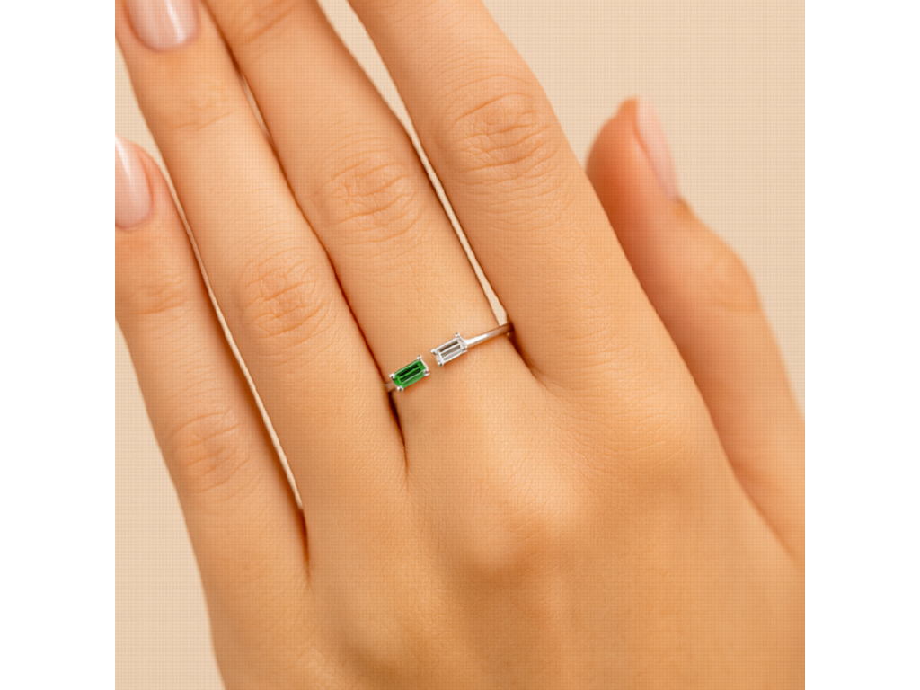MINET Elegantní stříbrný prsten s bílým a zeleným zirkonem vel. 54
