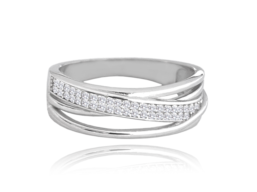MINET Křížený stříbrný prsten s bílými zirkony vel. 66