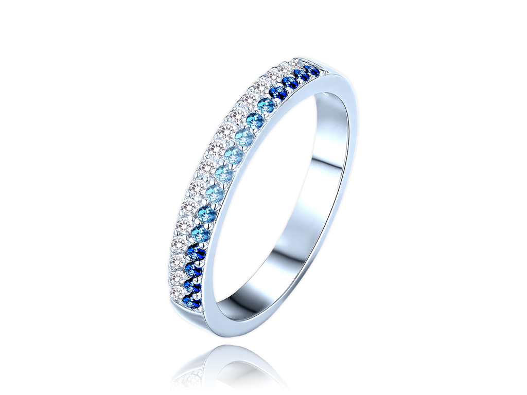 MINET Luxusní stříbrný prsten s bílými a modrými zirkony vel. 53