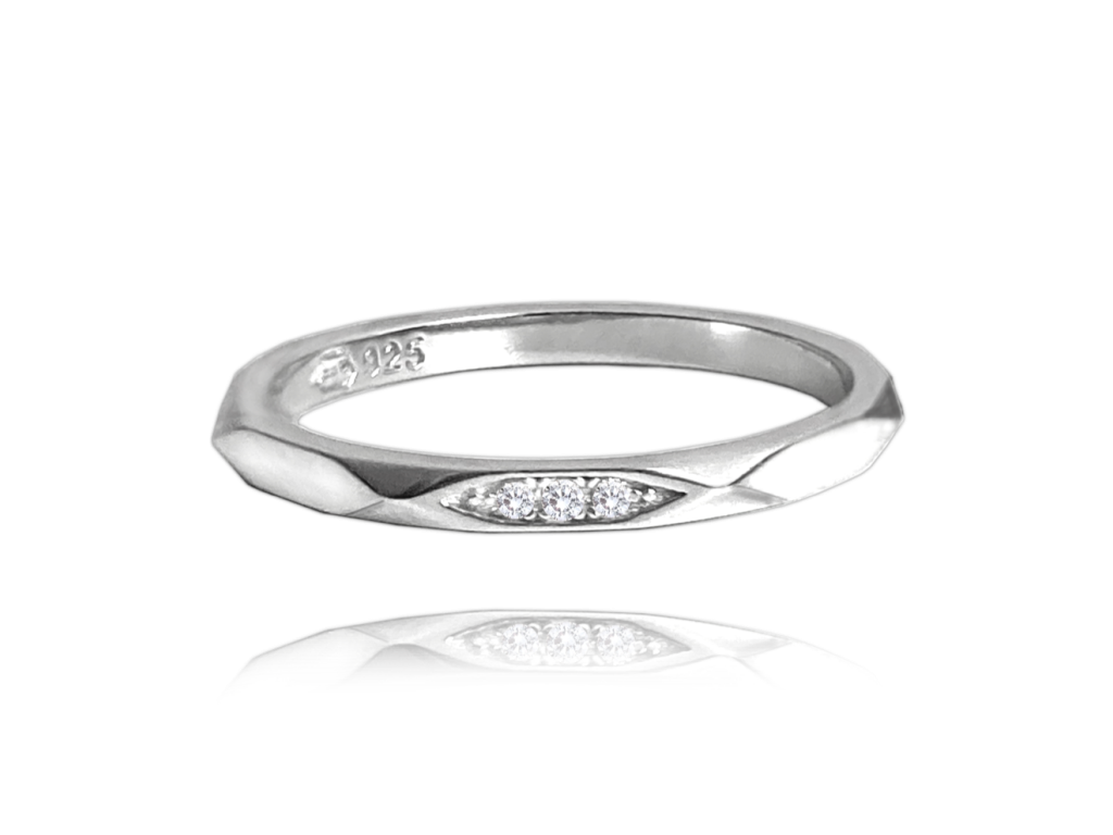 MINET Minimalistický snubní stříbrný prsten se zirkony vel. 60