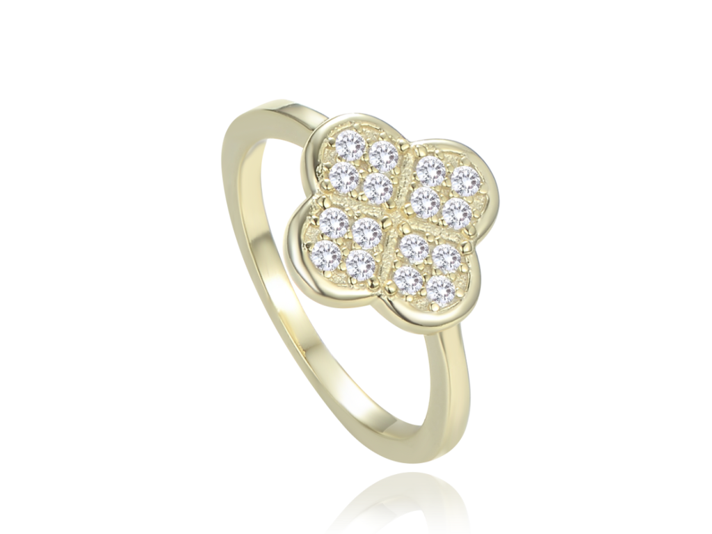 MINET Pozlacený stříbrný prsten čtyřlístek s bílými zirkony vel. 50