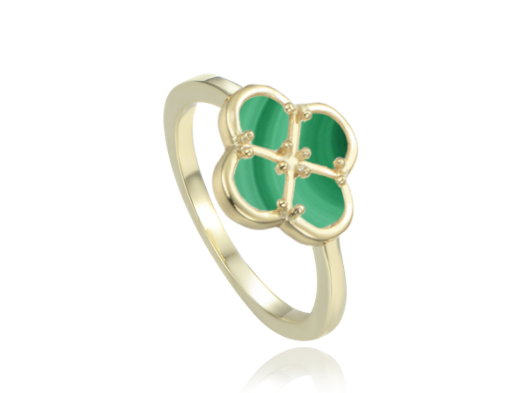 MINET Pozlacený stříbrný prsten čtyřlístek se zeleným malachitem vel. 60
