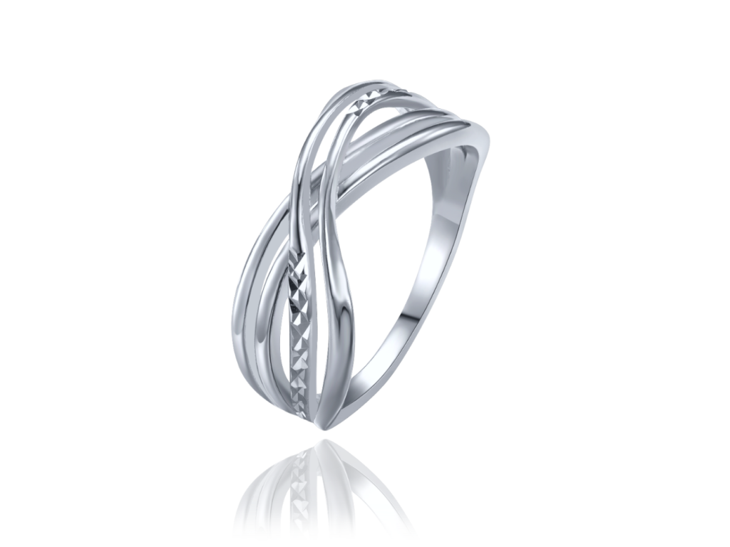 MINET Překřížený stříbrný broušený prsten vel. 57
