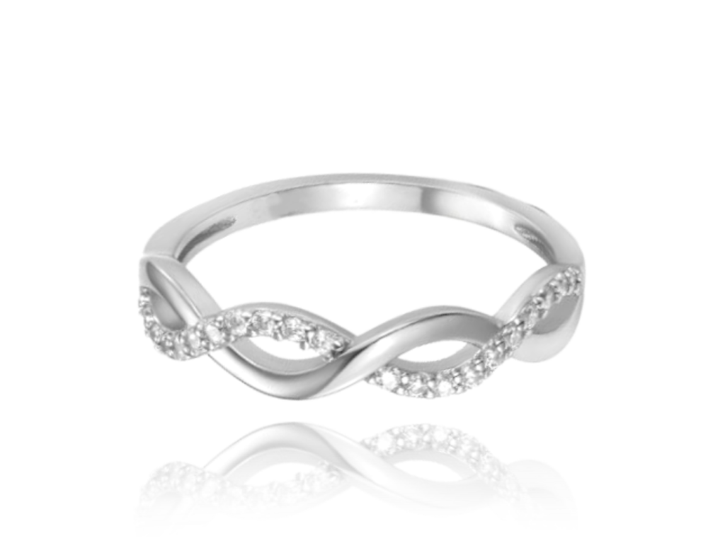 MINET Překřížený stříbrný prsten s bílým zirkonem vel. 65