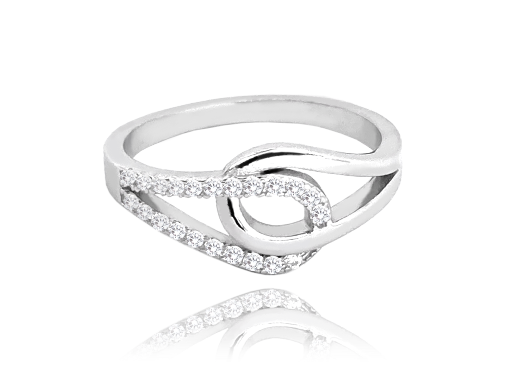 MINET Propletený stříbrný prsten se zirkony vel. 51