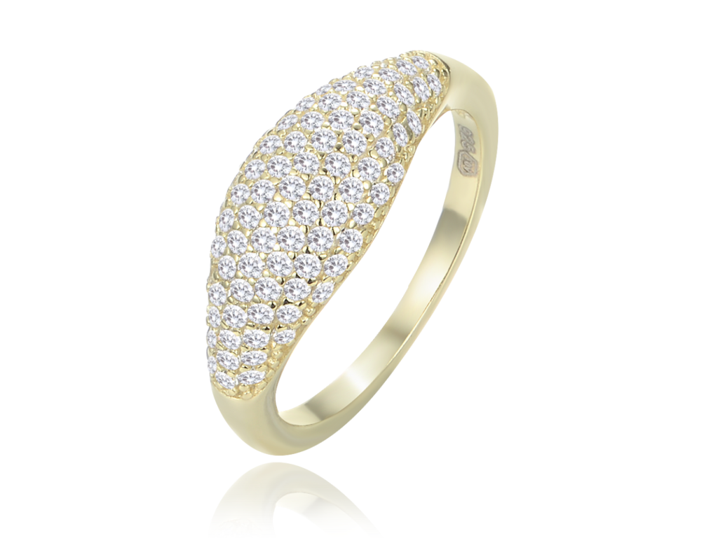 MINET Stříbrný pozlacený prsten kapka s bílými zirkony vel. 58