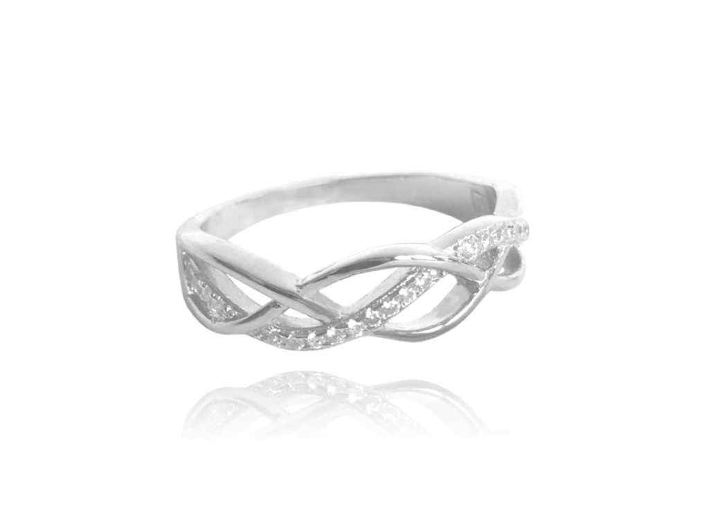 MINET Stříbrný propletený prsten s bílými zirkony vel. 65
