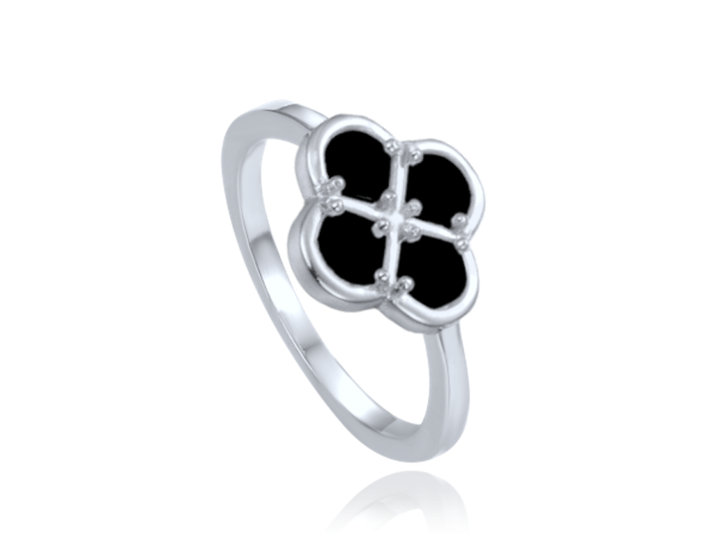 MINET Stříbrný prsten čtyřlístek s černou perletí vel. 54