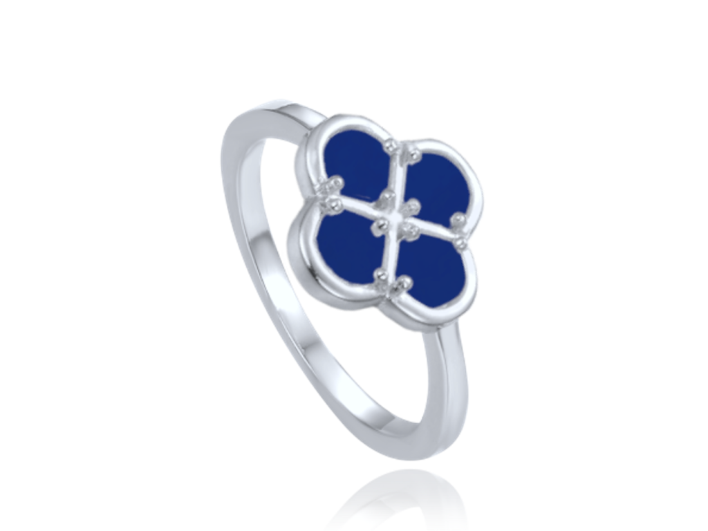 MINET Stříbrný prsten čtyřlístek s modrým lapisem vel. 56