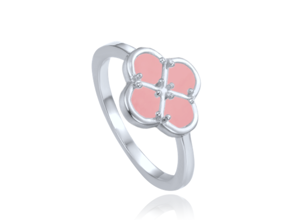 MINET Stříbrný prsten čtyřlístek s růžovým jadeitem vel. 58