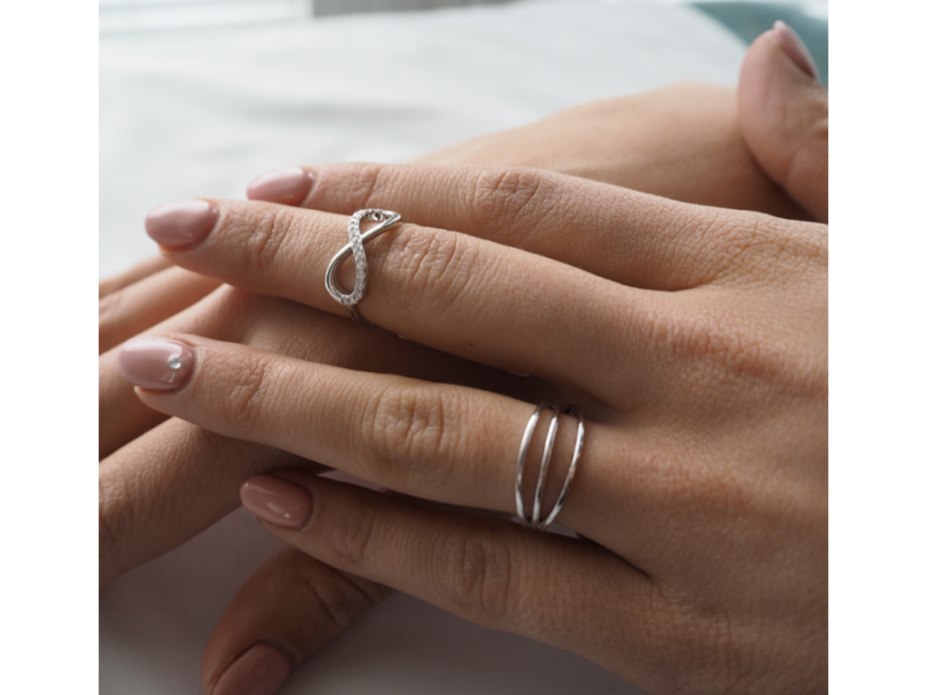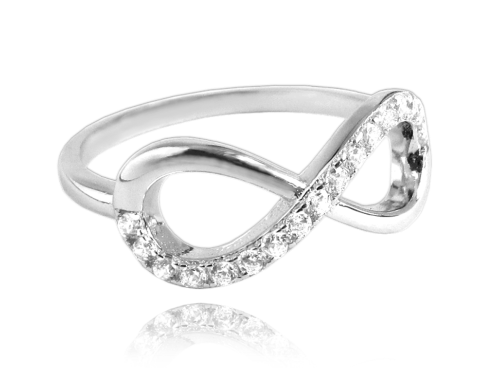 Stříbrný prsten MINET se symbolem nekonečna je odrazem současných trendů. Zajímavě posazené kamínky z něj udělají originální doplněk pro každodenní nošení. Prstýnek je vyroben z rhodiovaného stříbra, kameny jsou zirkony. Díky kvalitním materiálům si zachovávají dlouhotrvající barvu i lesk.Doplňkové parametry