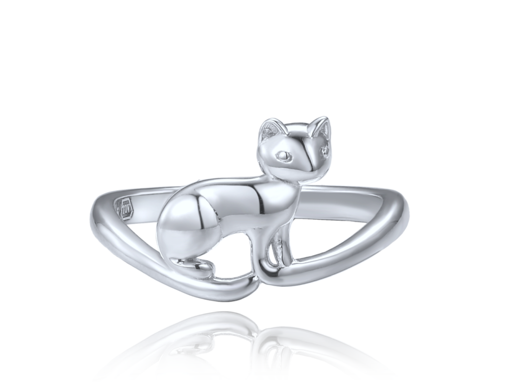 MINET Stříbrný prsten kočka vel. 50