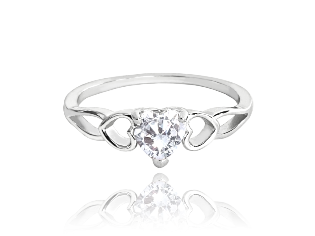 MINET Stříbrný prsten LOVE s bilým srdíčkovým zirkonem vel. 55